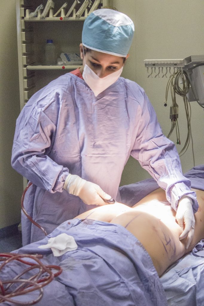 Previa valoración del paciente, se realiza marcaje de las zonas a tratar. Posteriormente bajo bloqueo o anestesia general, la Dra. Evelin Veras realiza pequeñas incisiones a través de las cuales introduce cánulas especiales conectadas a una máquina lipoaspiradora, para extraer cúmulos grasos. En algunos casos se puede utilizar esta misma grasa en otras áreas del cuerpo que requieren mayor volumen o soporte.